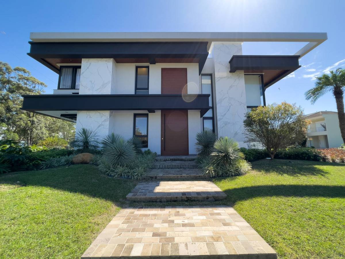 Sobrado moderno, com 588, 34m², 6 Suítes (sendo 1 Master com Hidro), Lavabo, Sala de Jantar, Sala de Estar, Espaço Gourmet, Sala de Cinema, Sala de jogos, Lavanderia, Elevador, Adega, Dependência de Empregada, Piscina de Concreto, Espera para Sistema Fotovoltaico, Jardim com Irrigação Automatizada, Garagem para 2 carros, Depósito Externo Fechado, Posição Solar e Localização Privilegiada. MOBILIADA E DECORADA. Terreno com 624 M².
